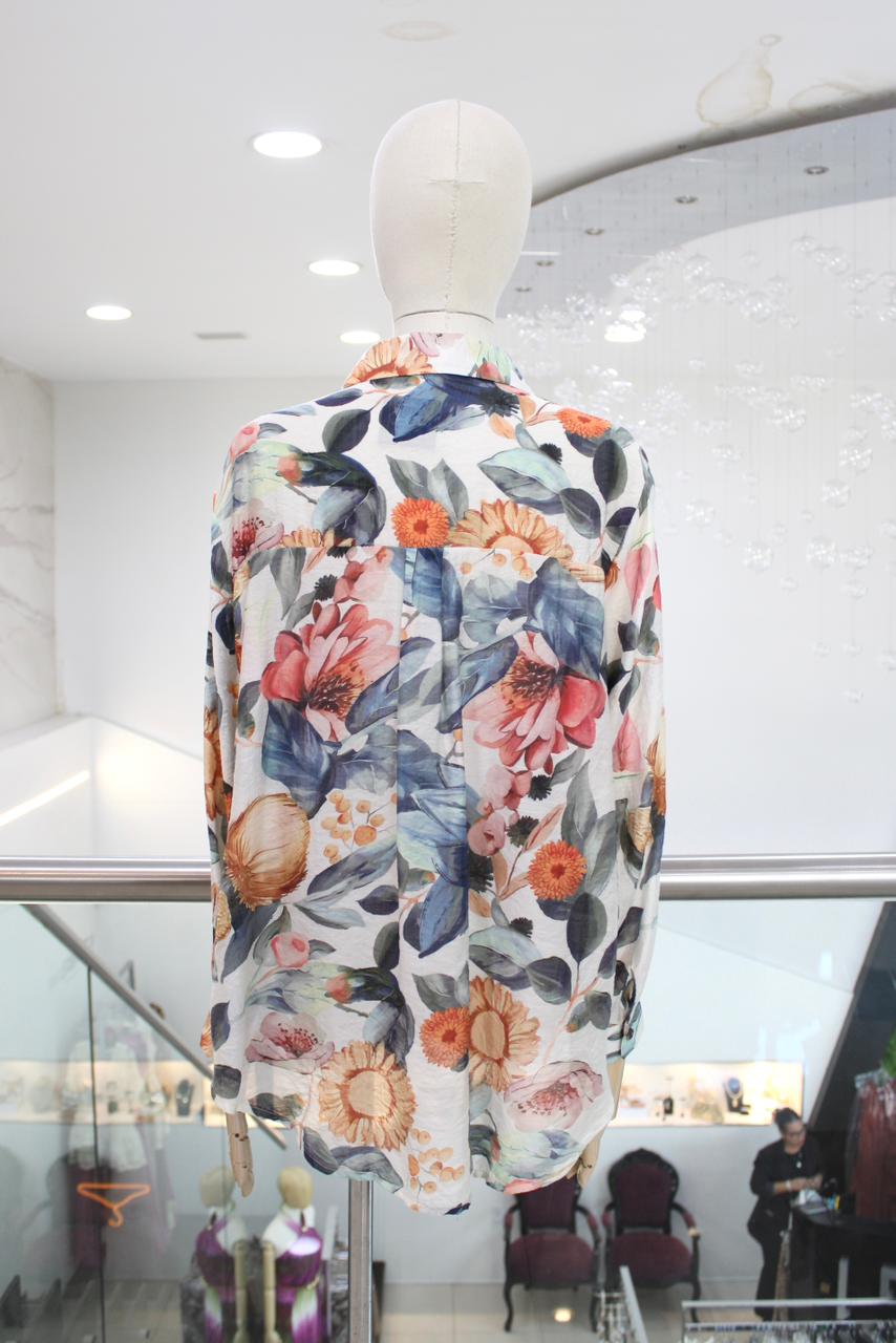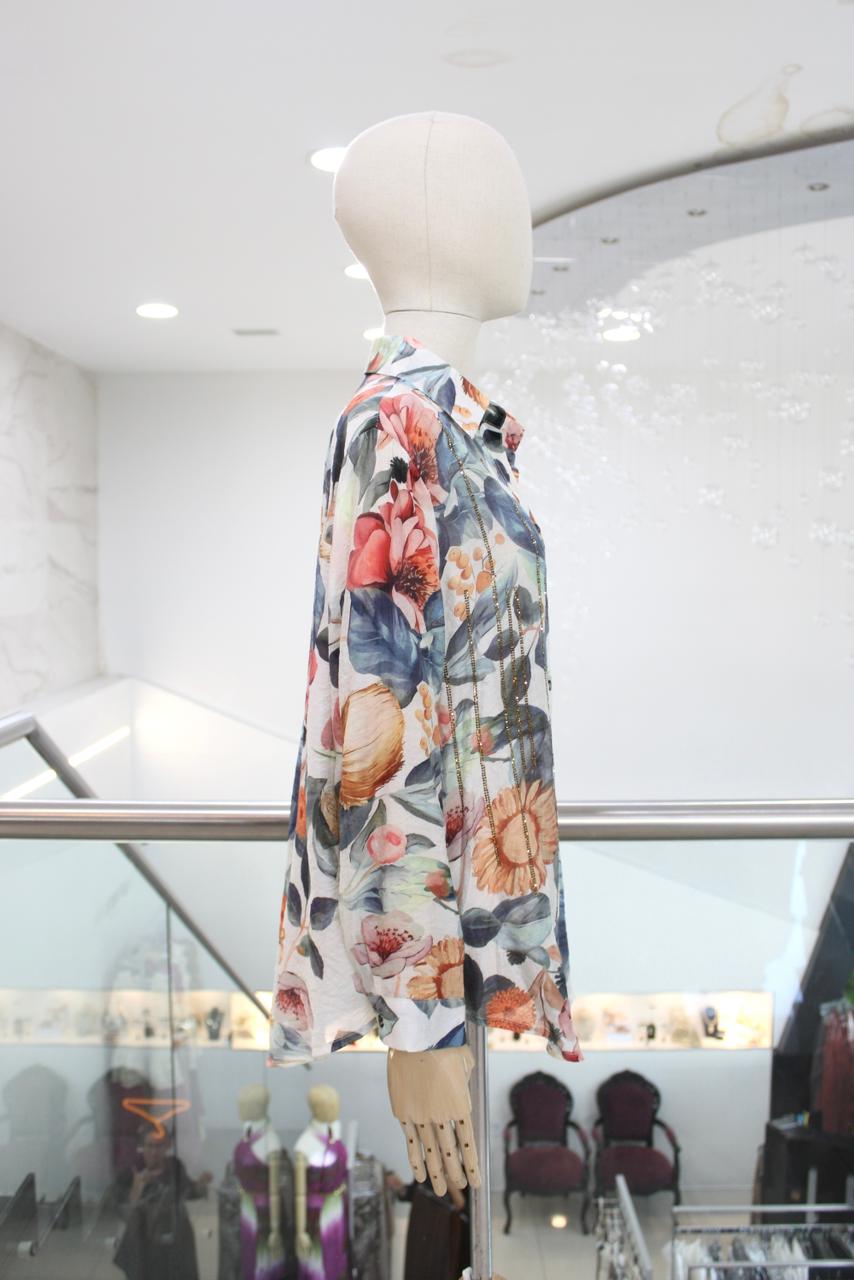 Blusa camisera de manga larga con estampado floral y aplicaciones de lentejuelas.