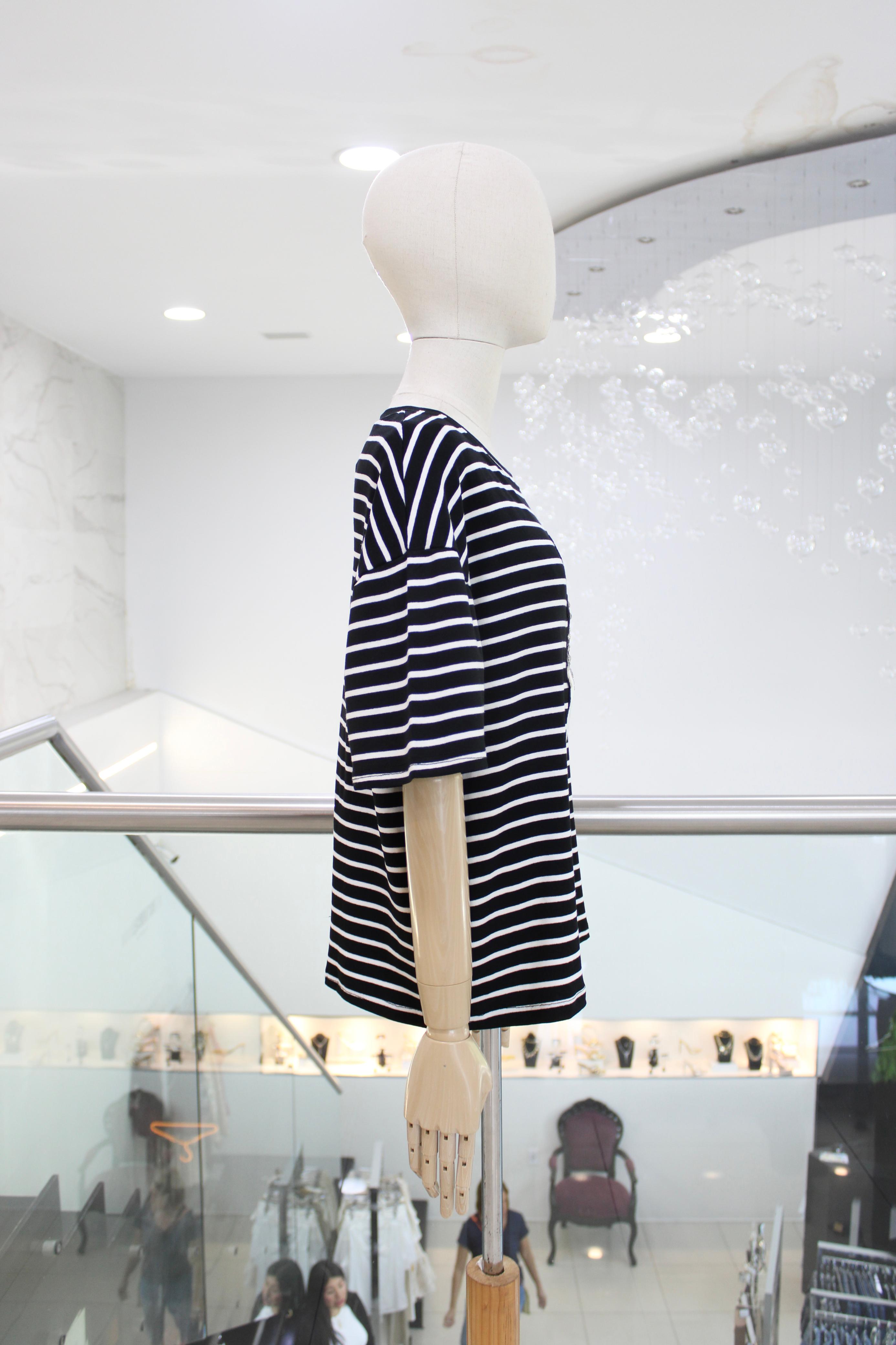 T-shirt de rayas blanca con negro y un osito con aplicaciones de pedrería.