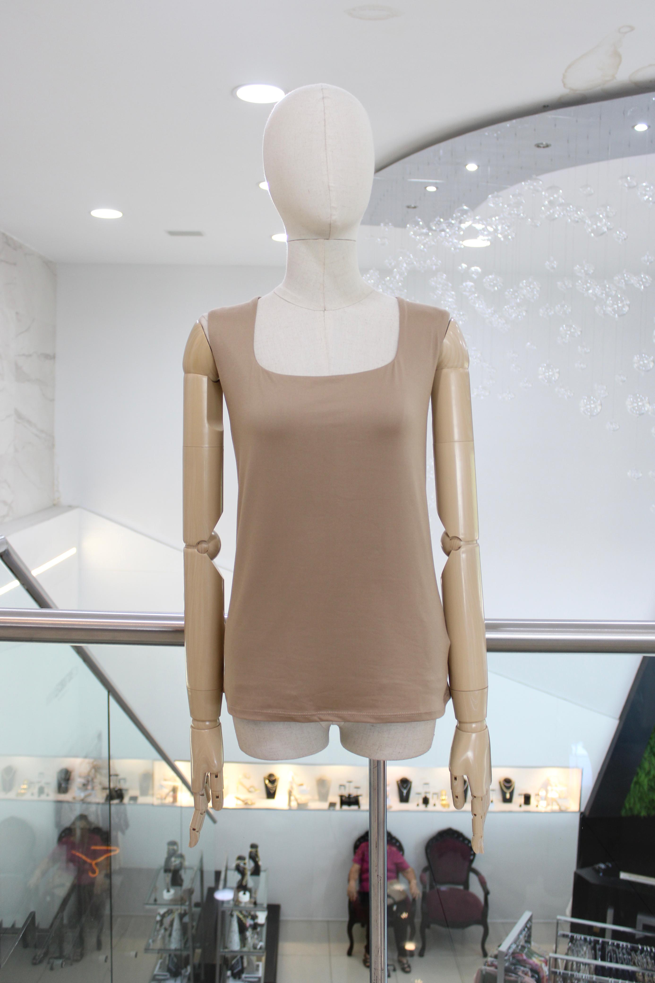 Blusa de tirantes gruesos beige.