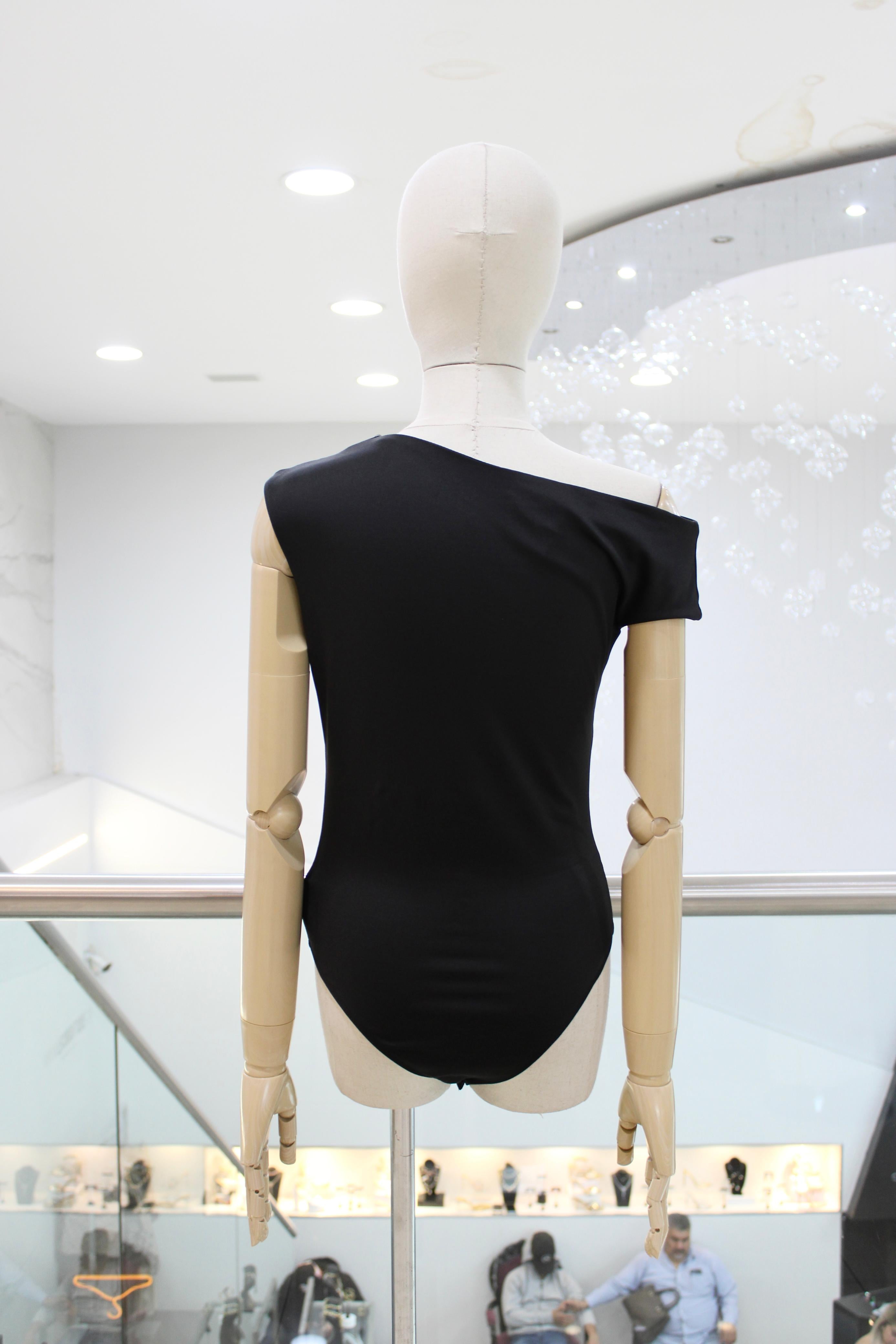 Body asimétrico en suave tela con spandex color negro.