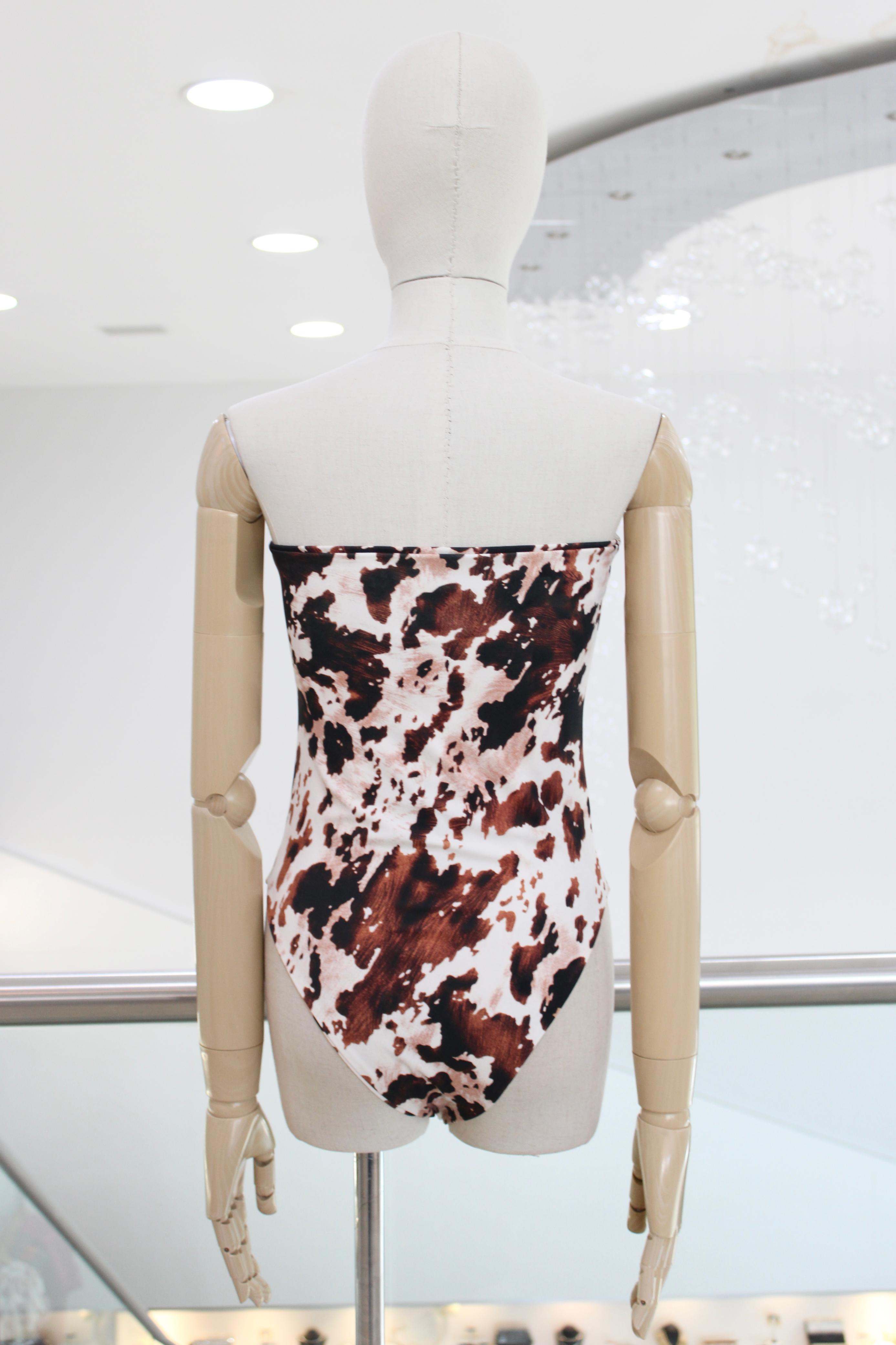 Body strapless de animal print en tonos cafés y beige en suave tela con spandex.