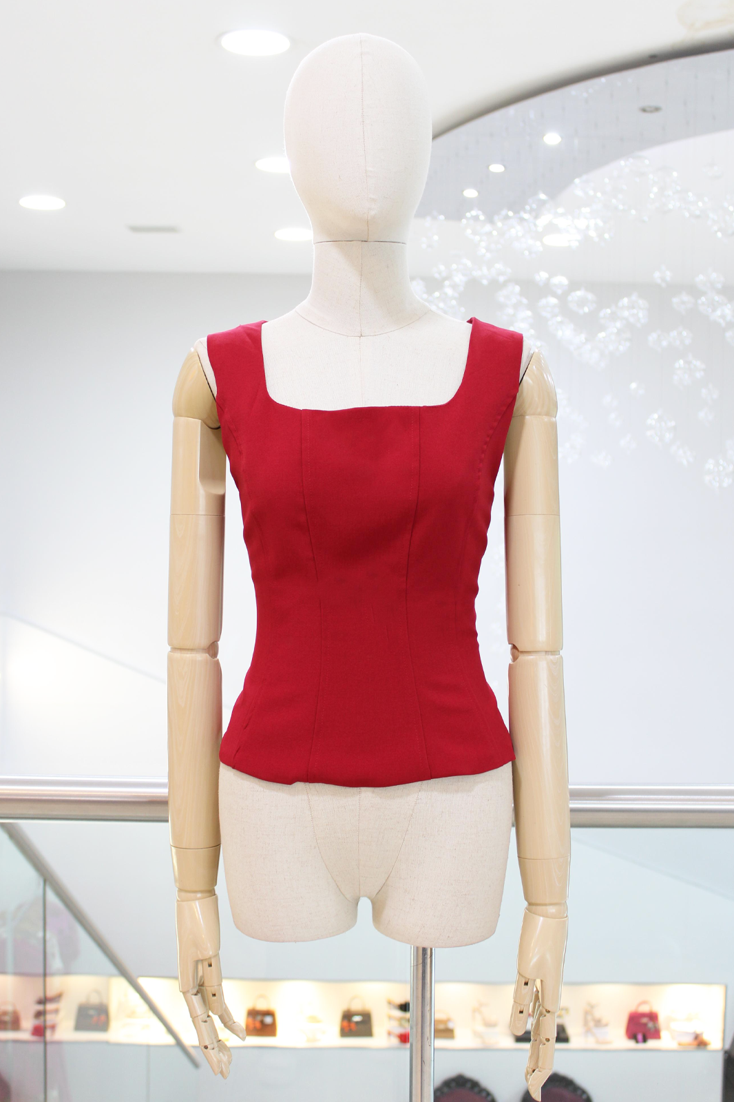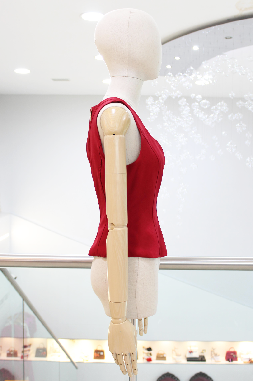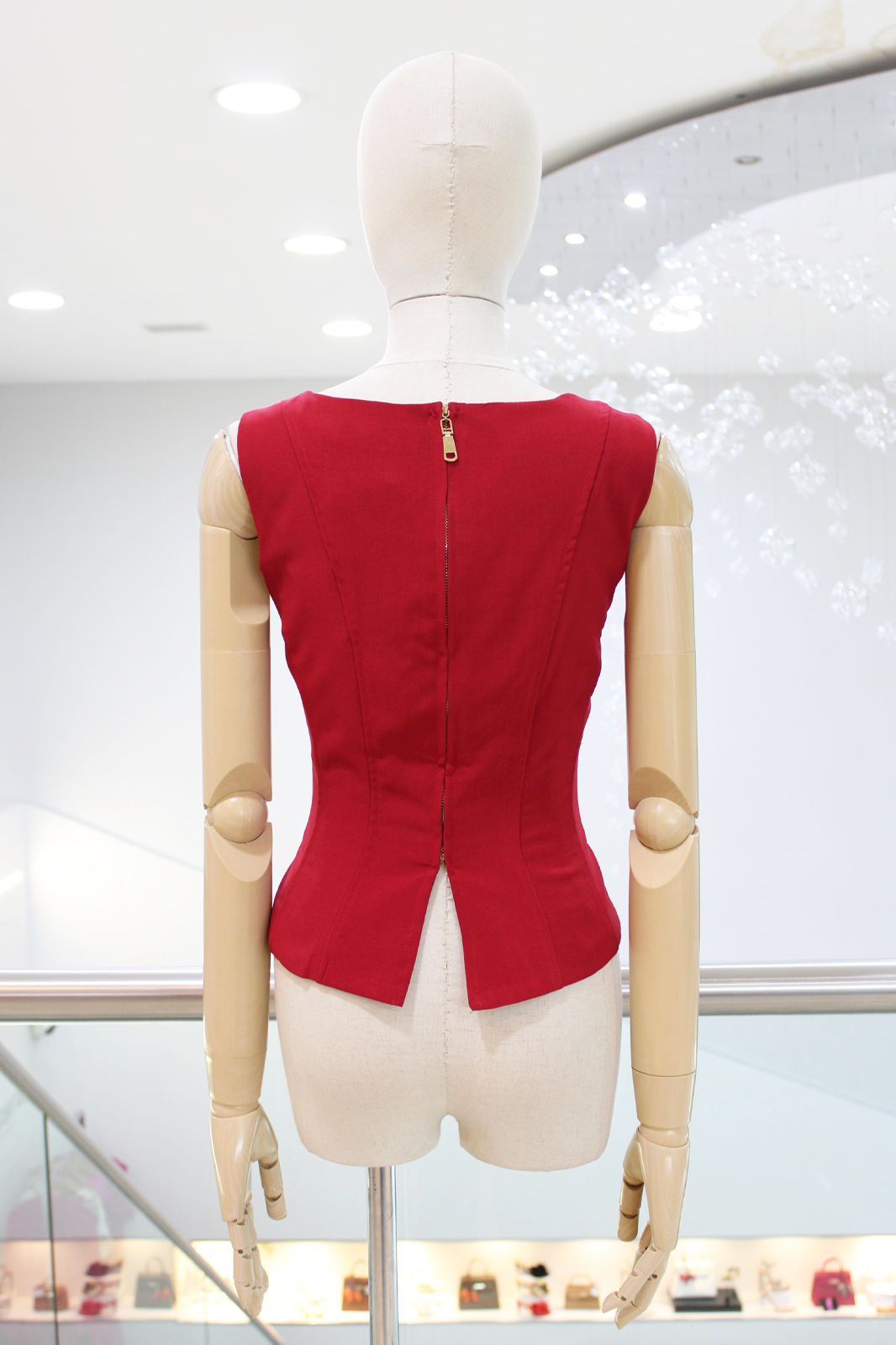 Blusa color rojo con ligero peplum, pequeña abertura y cierre en espalda.
