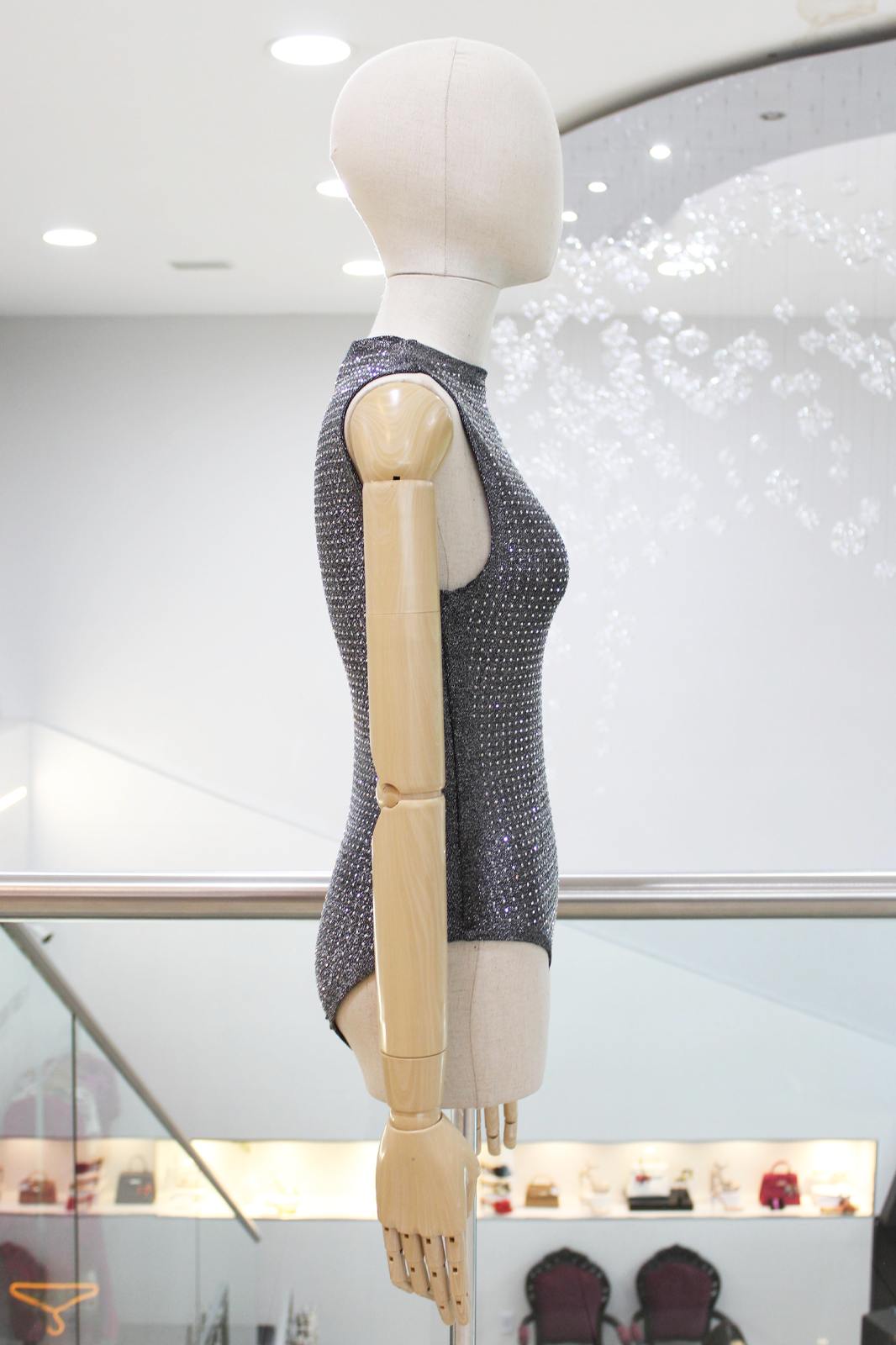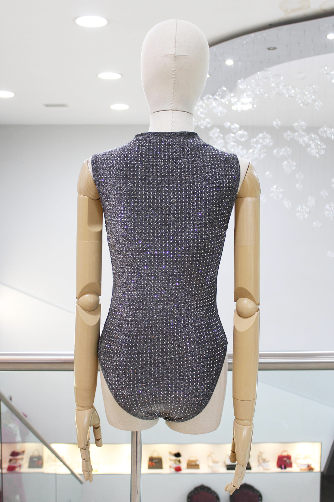Body sin mangas color negro con aplicación de pedreria mini de brillos en toda la prenda.