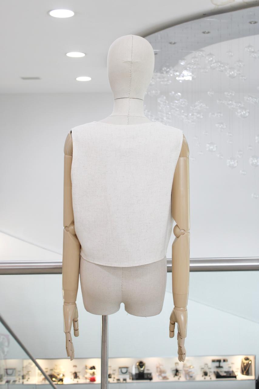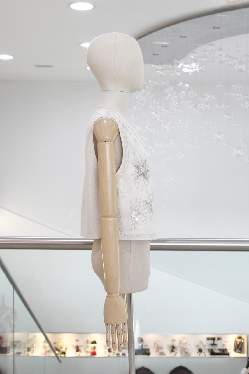 Chaleco corto color ivory con aplicaciones de estrellas bordadas en hilo metálico, cuentas y lentejuelas plateadas.