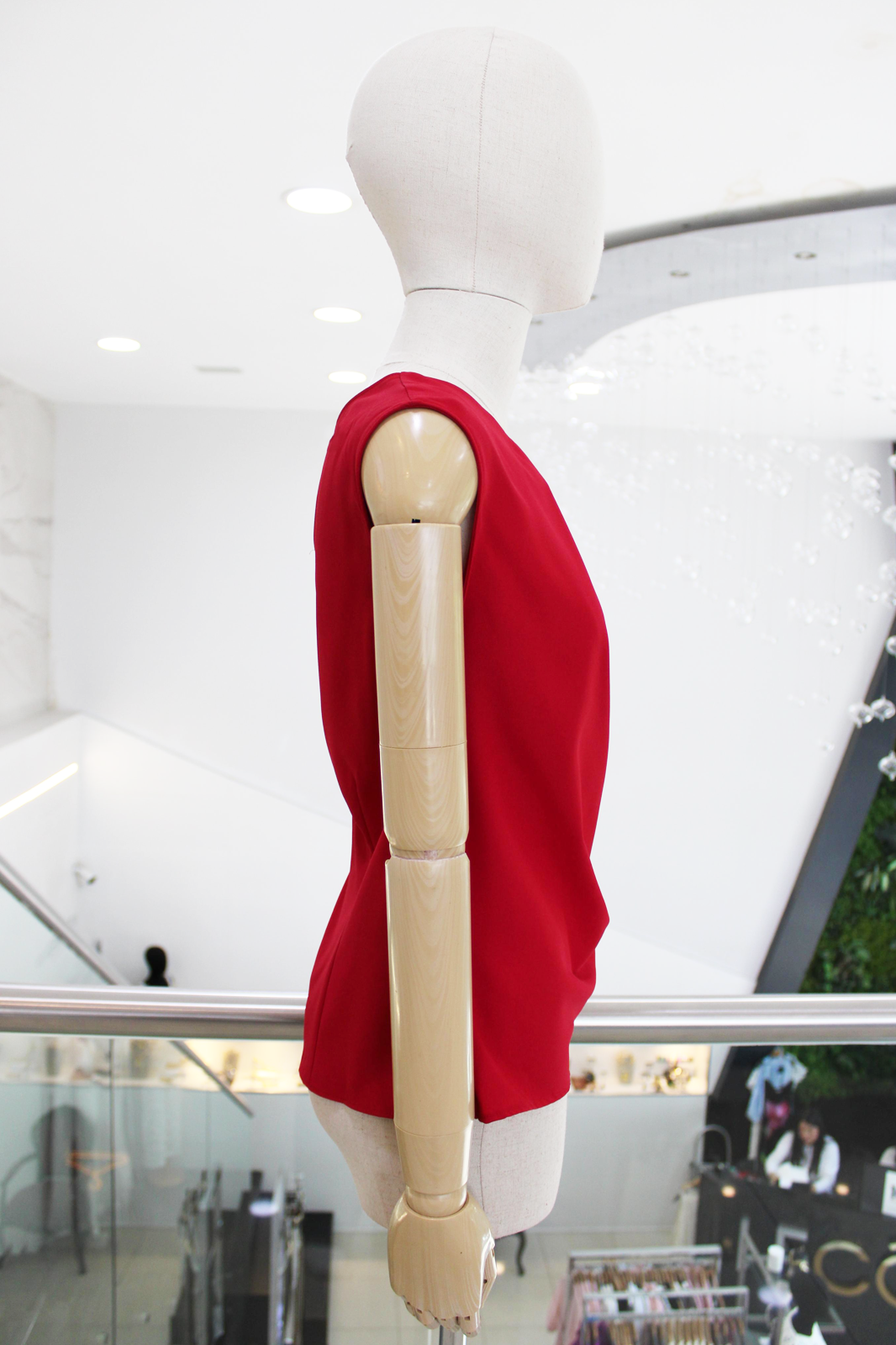 Blusa sisada en suave tela roja con detalle de hebilla dorada a un costado y cierre lateral