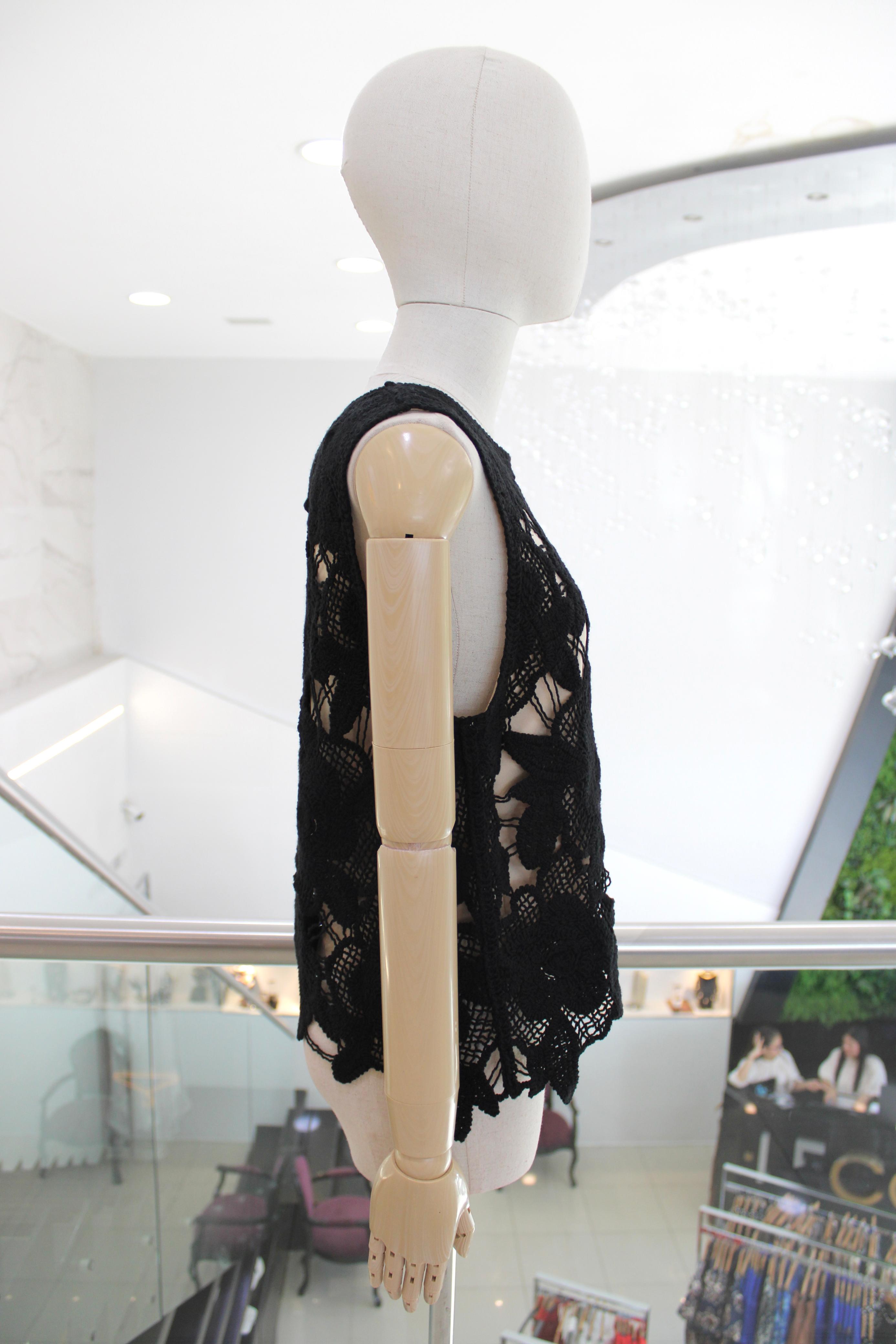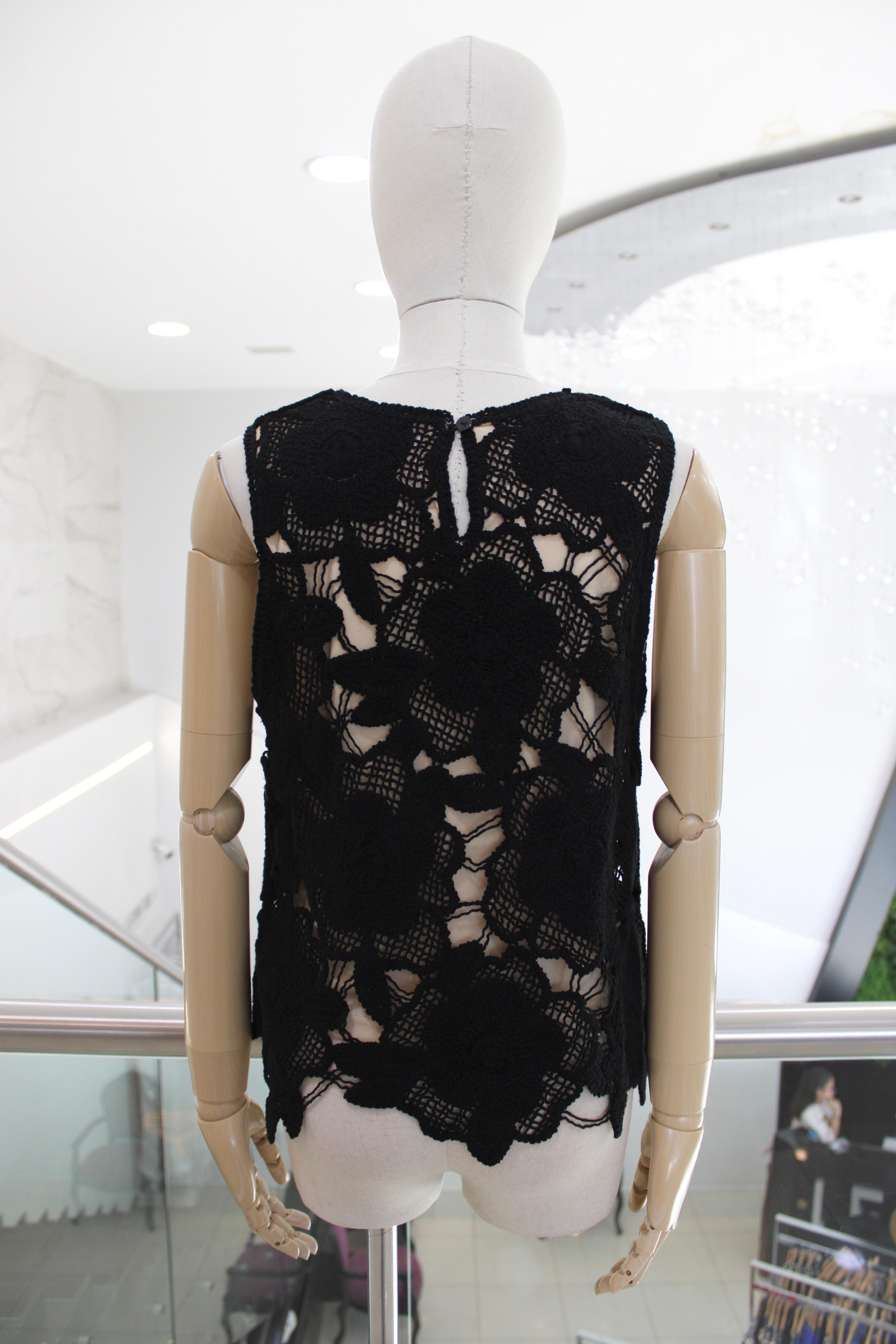 Blusa sin mangas en tejido con diseño floral en color negro, incluye forro en tono beige.