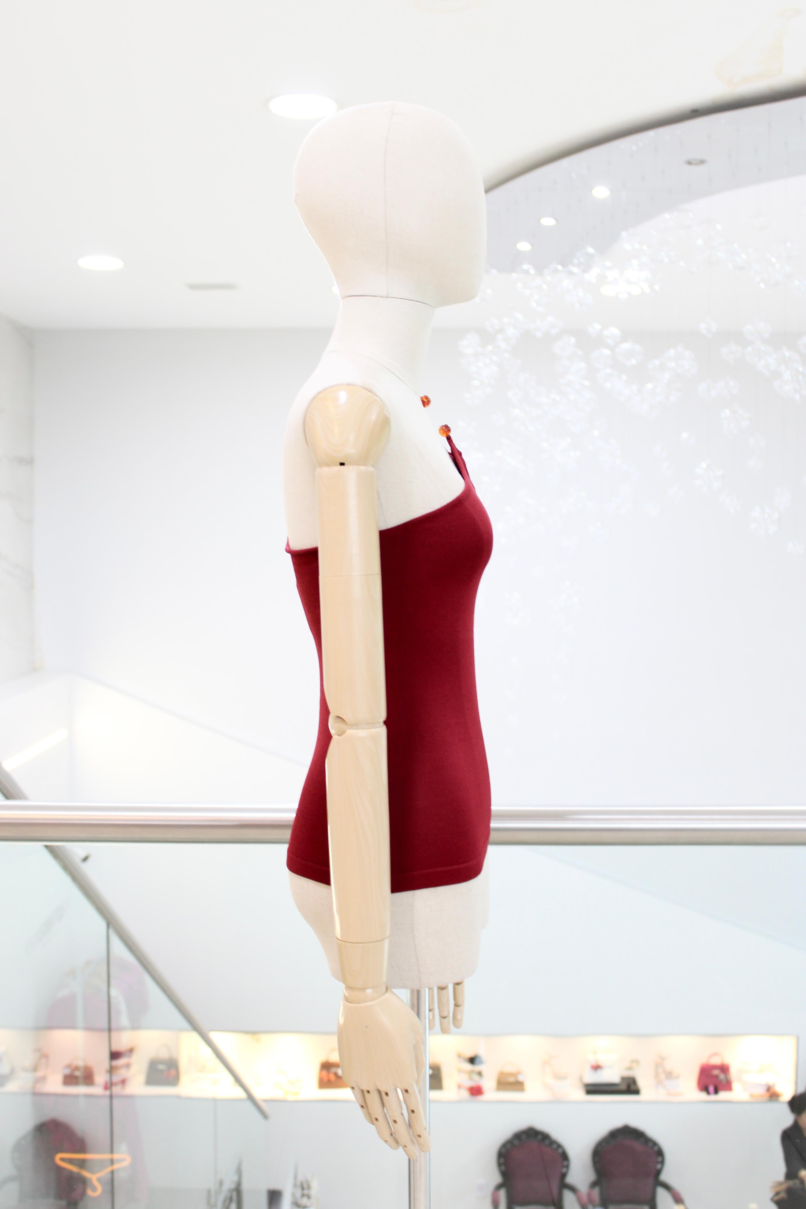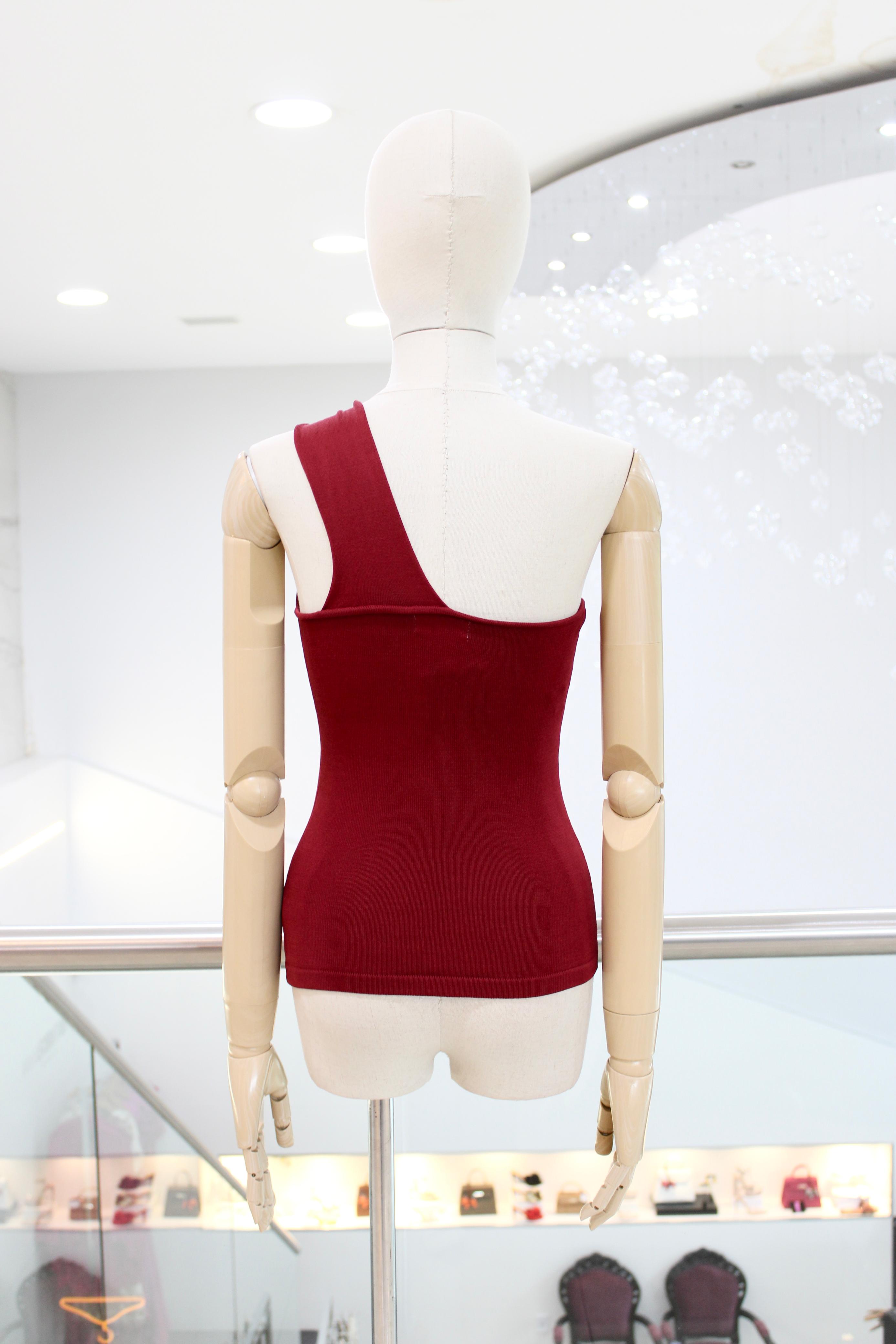 Blusa en suave tela con spandex vino a un hombro con detalle de aro dorado con piedra ambar