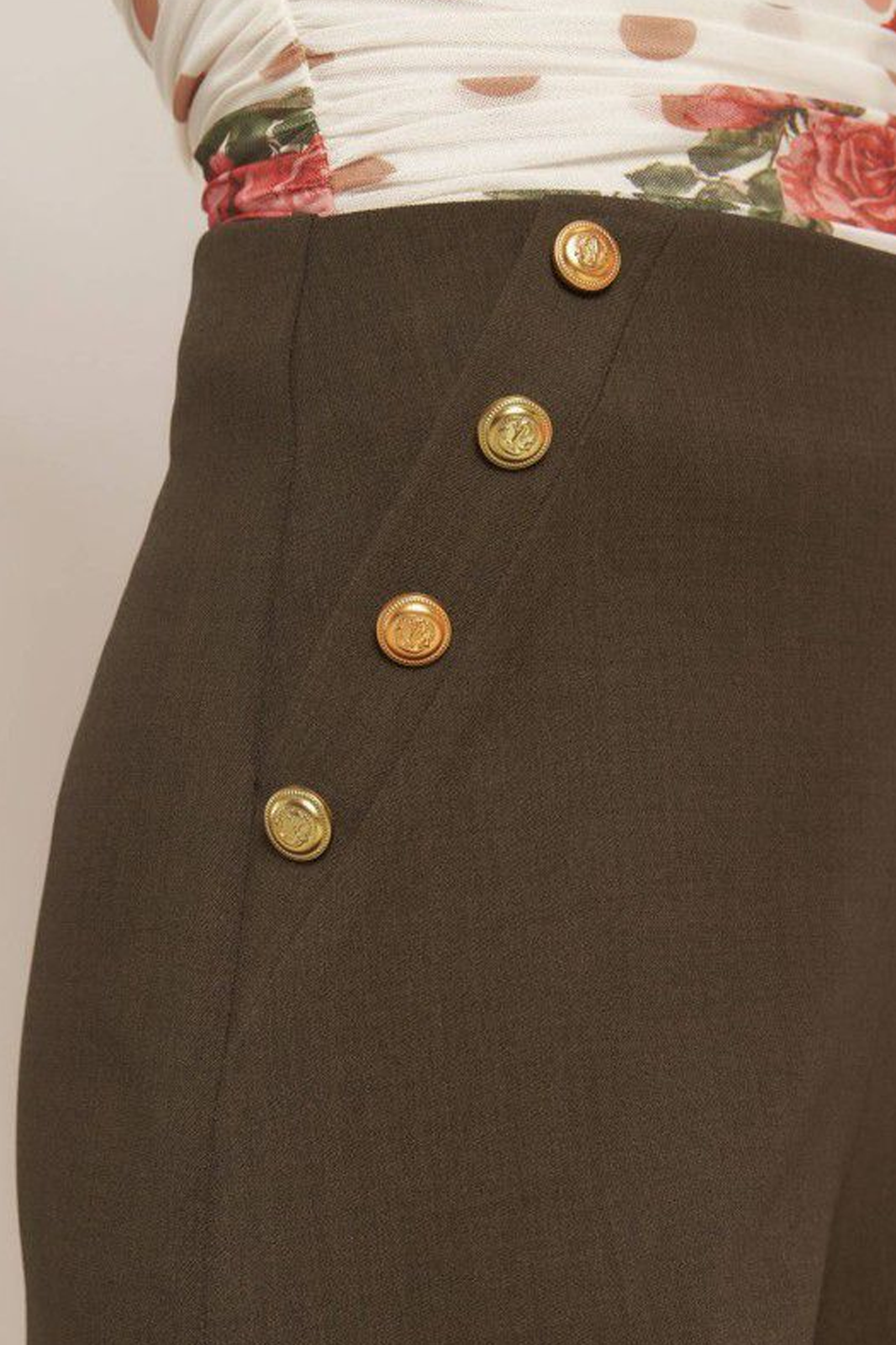 Pantalón café con botones dorados