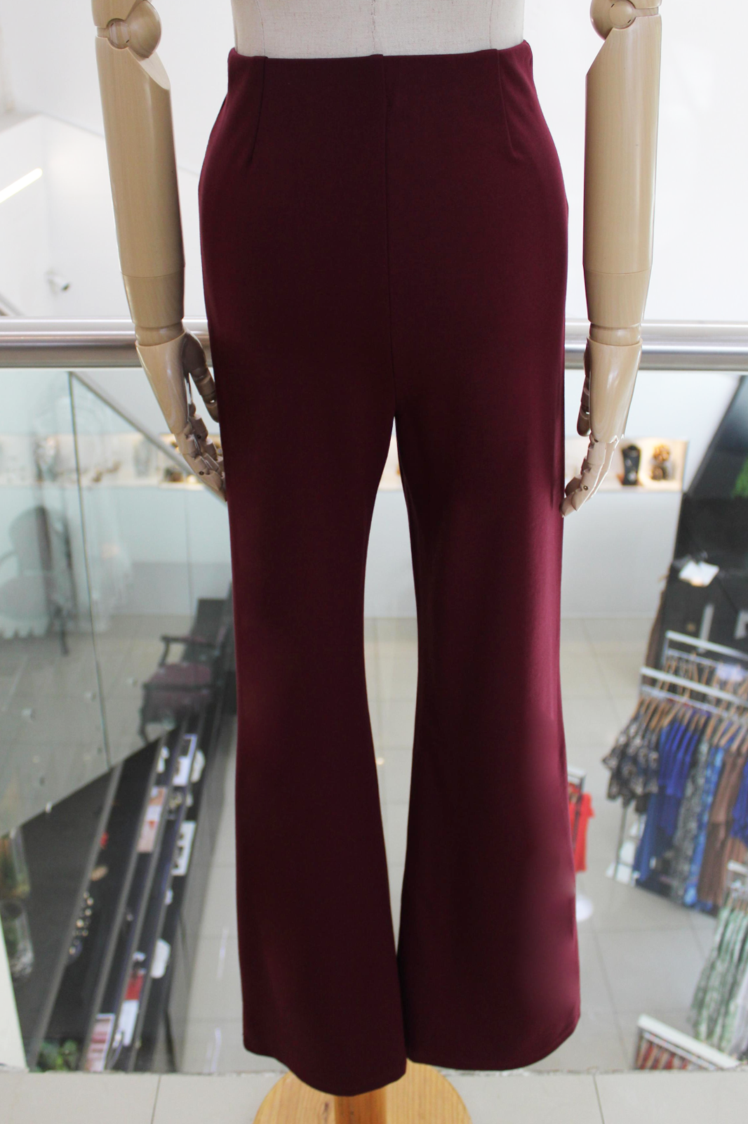 Pantalón de vestir flare color vino.