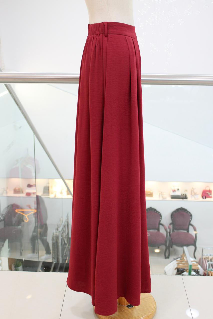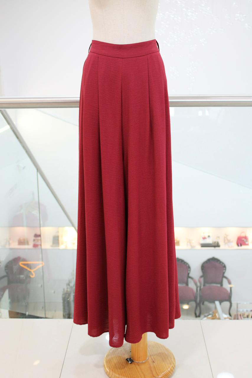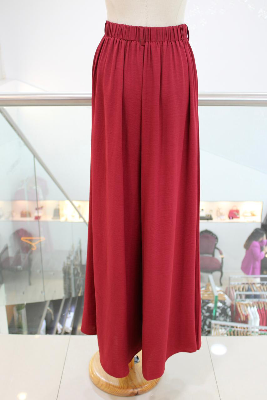 Pantalón de vestir amplio color vino con pinzas frontales y elástico en cintura.